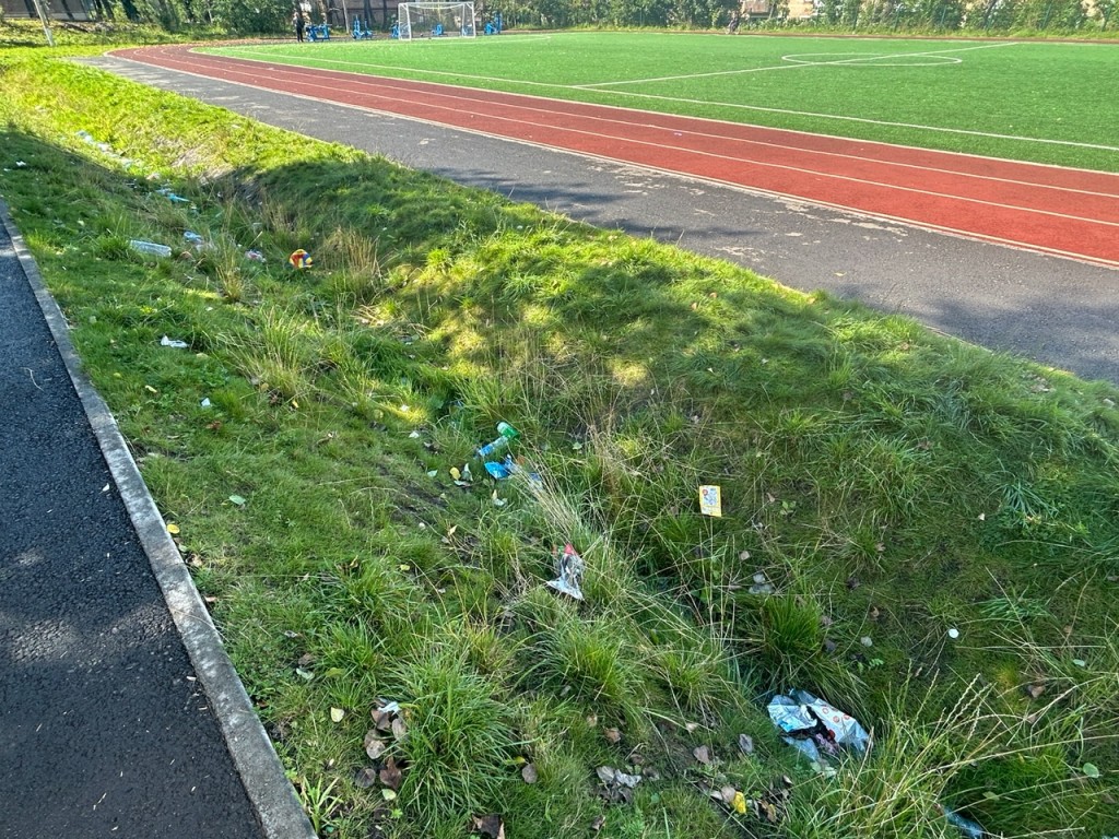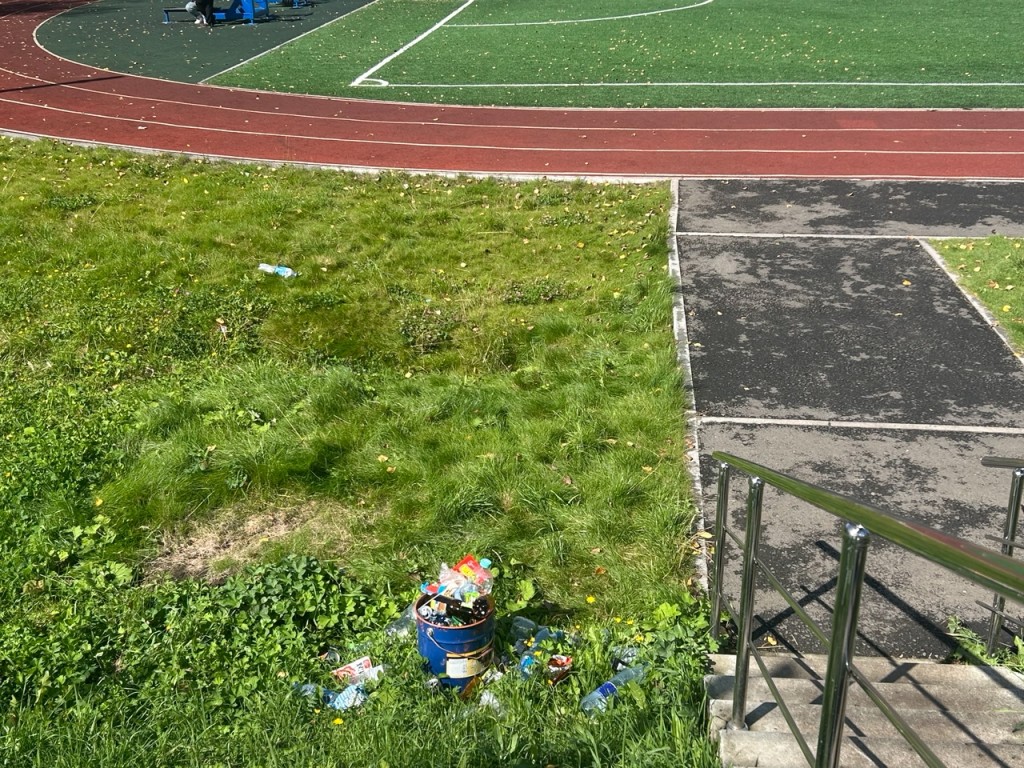 «А где дворники?»: бакальцев возмущает, что спортивную площадку от мусора очищают дети