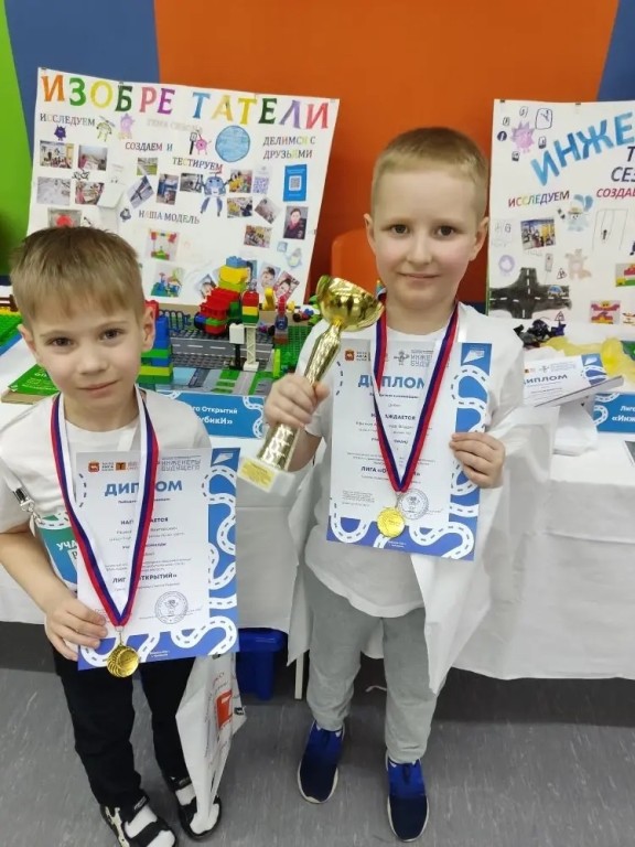 Роман Рыжов и Александр Уфимов выступали в лиге «Открытий» (4–6 лет) в номинации «Дебют». Как отметила Лариса Рифовна, для ребят это были первые соревнования робототехнике. Заниматься мальчишки начали только в сентябре! Небольшой опыт не стал преградой: Роман и Александр уверенно выступили перед жюри, несмотря на то, что рядом по условиям конкура не было ни наставника, ни родителей. Их дебют был успешным: проект ребят признан одним из лучших!