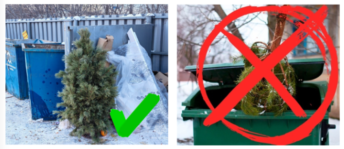 Если такие площадки отсутствуют, новогодние хвойные деревья можно оставить рядом с баками на контейнерной площадке, не преграждая при этом подъездные пути для мусоровозов.