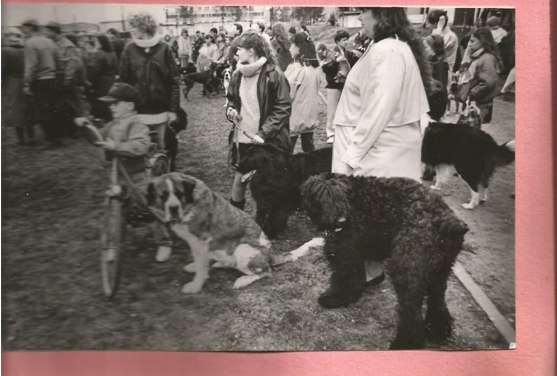 На фото из архива Татьяны Просвирновой выставка собак г. Сатка 1995 г., стадион школы №4