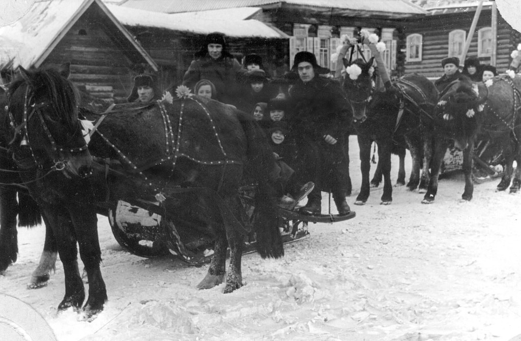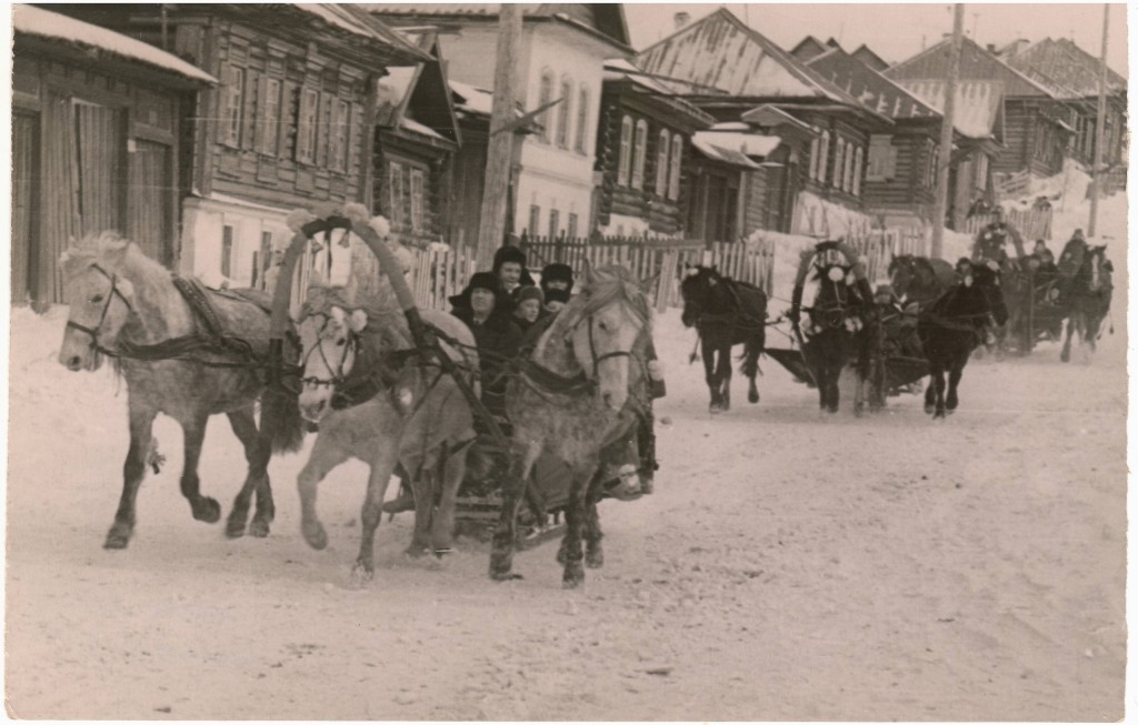«Есть в нашей истории годы, когда о ней помалкивали в столицах, в нашем же маленьком поселении тихонько обходились домашними посиделками. В 1958 году Масленицу возродили и реабилитировали – с народными гуляниями и вкусными блинами с ароматным чаем из больших самотопных самоваров. И, конечно, с катанием на тройках — как на нашей музейной фотографии — веселый поезд на улице Карла Маркса в конце 1950-х», — рассказали сотрудники музея.