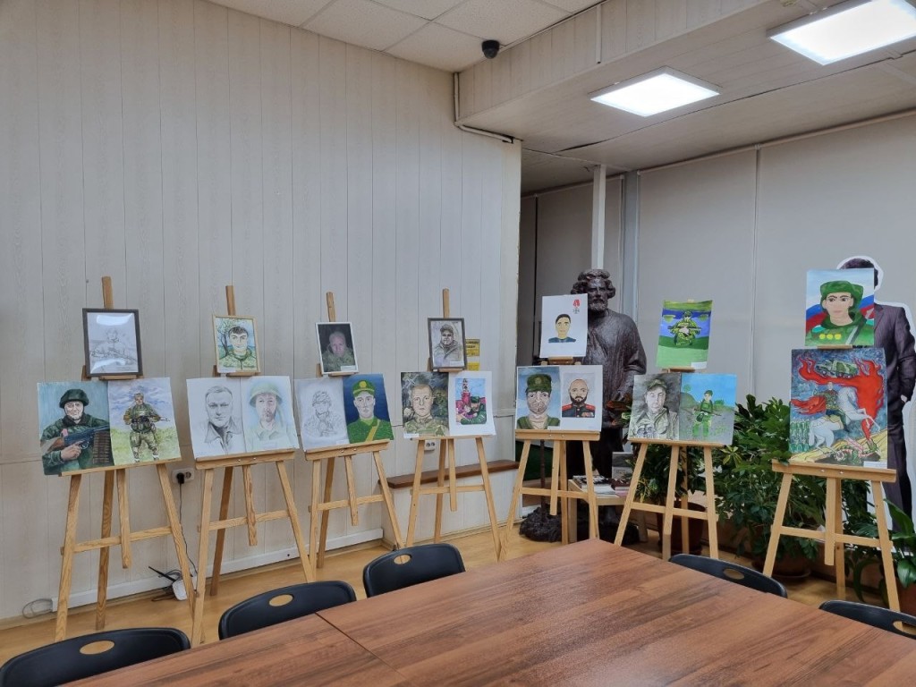 Выставка рисунков в Центральной библиотеке открыта в рамках патриотического проекта «ЛИЦА ГЕРОЕВ», старт которому дал депутат Госдумы Олег Колесников.