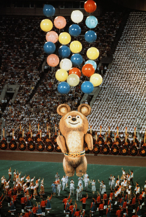 На закрытии Олимпиады-80 под трогательную мелодию Александры Пахмутовой Олимпийский Мишка, помахав лапой, улетел в ночное небо.