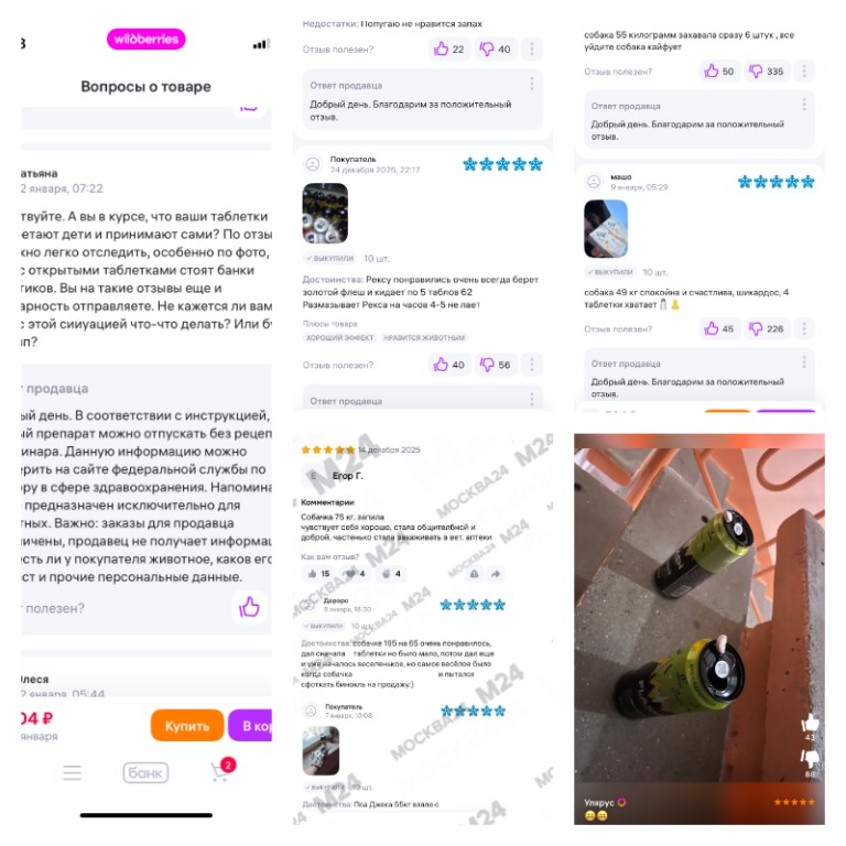 В комментариях на маркетплейсах подростки, приобретающие ветеринарные препараты с наркотическим эффектом, делятся опытом их употребления, обсуждают эффекты, дозировки и «лучшие схемы» приема. Нам, к примеру, не составило найти такие таблетки и даже их заказать.