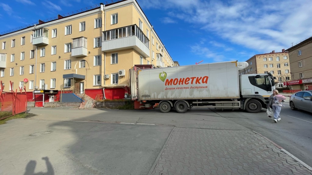 «Проходить по проезжей части?»: жители Сатки пожаловались, что грузовик с товарами преграждает дорогу пешеходам