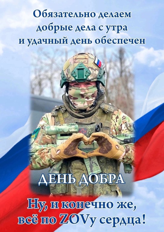 Сегодня среда. День, который волонтеры движения «От Дома до Фронта» объявляют Днем Добра. Каждая ваша посильная помощь – это значительный вклад в одно общее и большое дело!