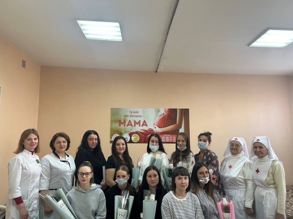 В комфортной и доверительной атмосфере будущие мамы могли получить актуальную информацию об уходе, требованиях гигиены и создании комфортных условий для мамы и новорожденного. Лекцию провела врач-педиатр, заведующая детским отделением Анна Хурматулина. Теплыми напутственными словами и яркими букетами будущих мам приветствовали сестры милосердия Храма Казанской иконы Божией Матери из п. Сулея.