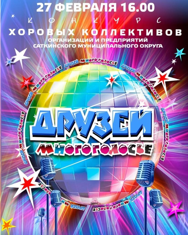 Конкурс хоровых коллективов организаций и предприятий Саткинского муниципального округа «Друзей многоголосье» пройдет в ДК «Магнезит» 27 февраля в 16.00.