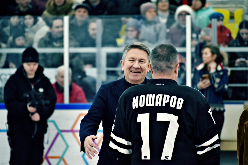 Гостей тепло поприветствовал первый заместитель губернатора Челябинской области Станислав Машаров — он вышел на лед в составе команды «Ветераны Трактора».