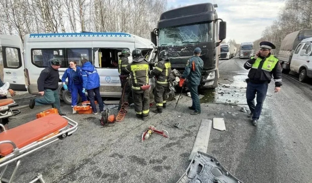 29 марта около 10.30 микроавтобус с пассажирами лоб с лоб столкнулся с грузовым автомобилем.