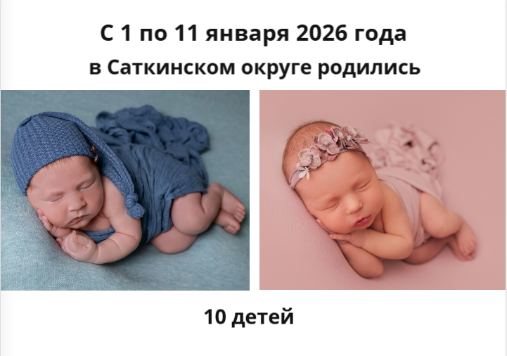 10 малышей появились на свет в Саткинском округе с 1 по 11 января. Как мы уже писали, первый новорожденный 2026 года — мальчик.