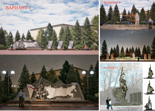 На очередном заседании рабочая группа по реализации мероприятий по увековечиванию памяти погибших в ходе специальной военной операции при главе Саткинского округа, в которую входят в том числе и ветераны СВО, рассмотрела шесть вариантов эскизов мемориала, который будет установлен на выбранном месте. С учётом требований архитектурных и градостроительных норм, а также уже имеющихся в сквере Славы элементов были выбраны три максимально соответствующих заявленным требованиям эскиза.