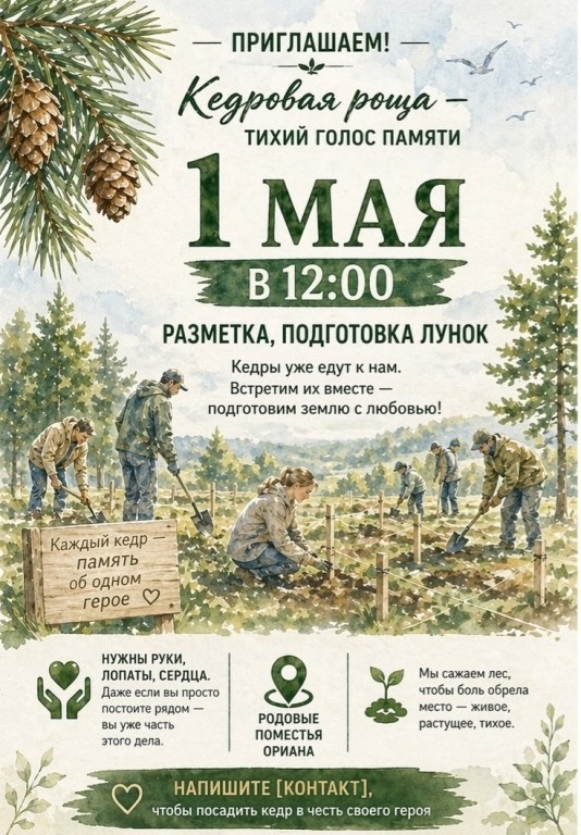 Стать участником проекта «Кедровая роща – живая память павшим» могут стать все желающие. Отметим, что благодаря спонсорам, территория обработана от клещей.