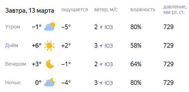 Пятничный день обещает быть по-весеннему теплым. Днем столбик термометра покажет +6°. Ночью, по прогнозу, температура не опустится ниже 0°.