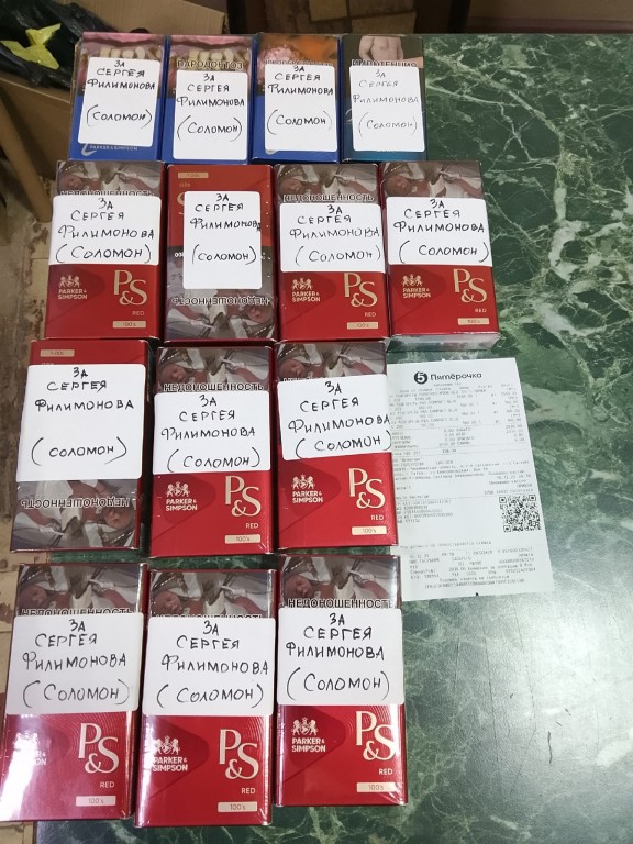 «Мы отчитываемся за каждый перевод! Вот и в этот раз, закупили и подписали сигареты в память о Сергее Филимонове. За эту неделю у нас две отправки гуманитарной помощи ребятам, сигареты отправили на два направления! Пусть наши защитники помянут ребят, погибших за Родину! Присоединяйтесь, пожалуйста! Сигарет на фронте много не бывает. А мы готовимся к следующей отправке, которая состоится в ближайшие дни».