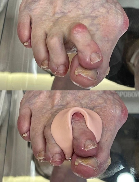 Особая гордость Ларисы – работа с индивидуальными ортозами из мягкого силикона. Этому тонкому искусству она училась в Москве у ведущих ортопедов. Эти незаметные помощники могут решить массу проблем: избавить от боли при ходьбе, раз и навсегда решить проблему мозолей в результате деформации пальцев и подарить долгожданный комфорт, о котором вы, возможно, уже и мечтать перестали.