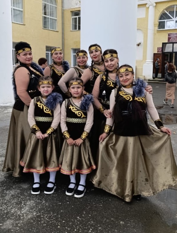 — Тогда мы от своей семьи подарили костюмы и головные уборы всем участникам коллектива. Я еле-еле успела их дошить. Это был наш хаир. Директор Дворца культуры Андрей Аркадьевич Рязанов на юбилей тоже подарил нам красивые костюмы.